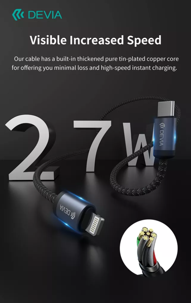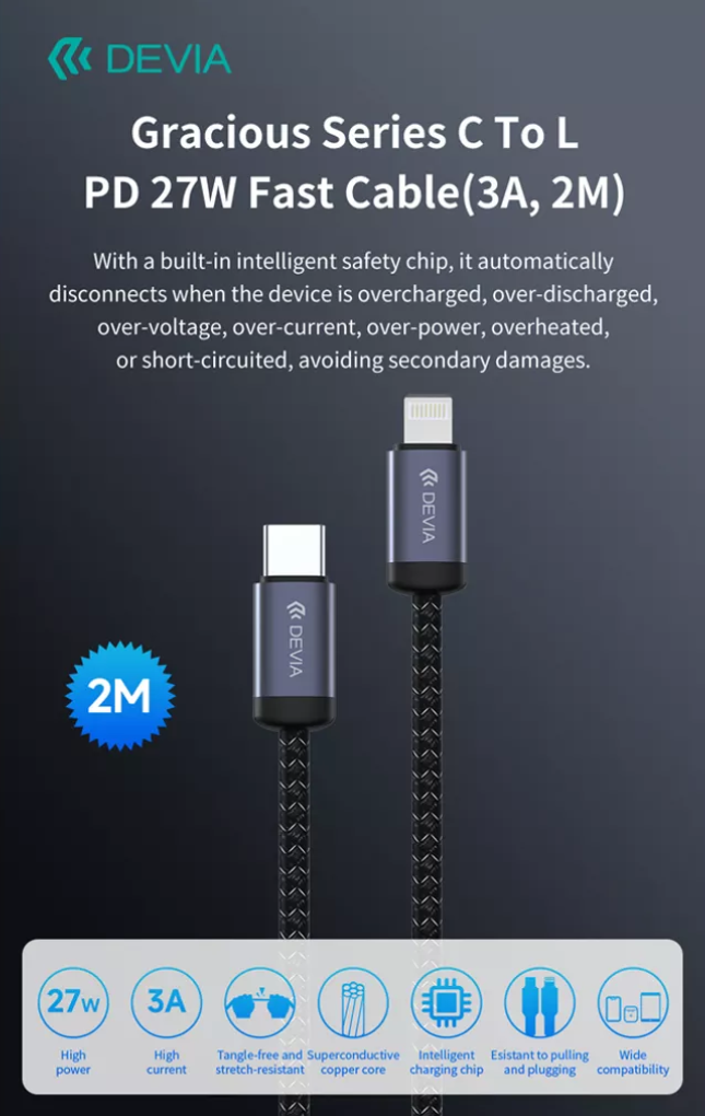 🔌 DEVIA CABLE GRACIOUS PD USBc  LIGHTNING 27W 2M NEGRO