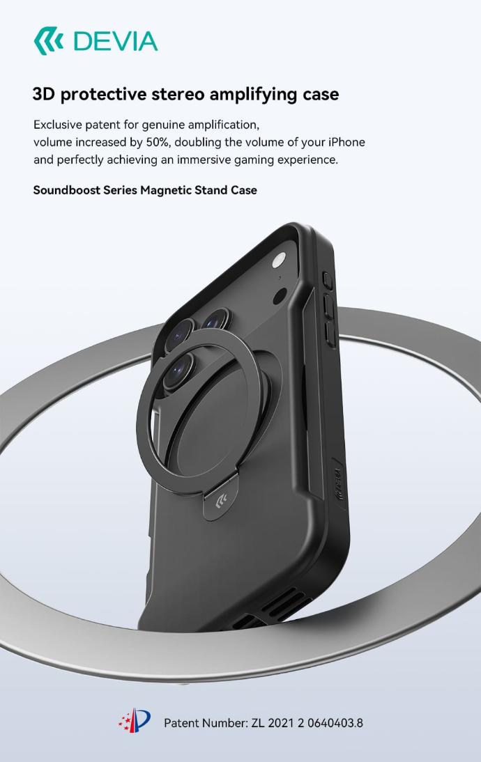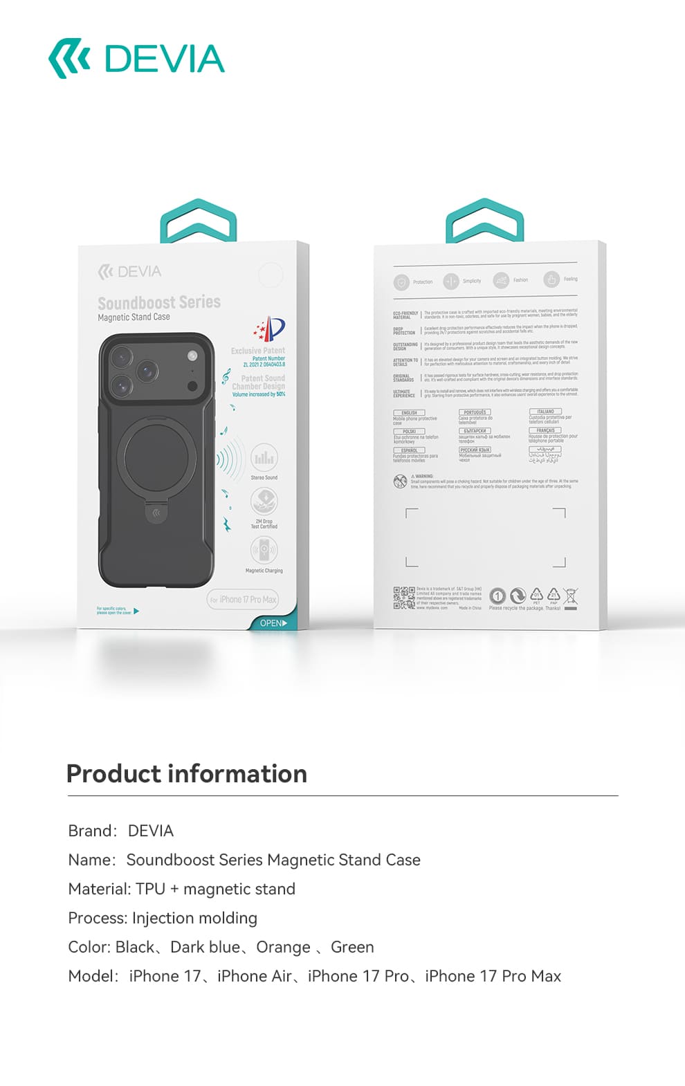 DEVIA CARCASA MAGNETIC SOUNDBOOST SOPORTE IPHONE 17 PRO MAX NEGRO