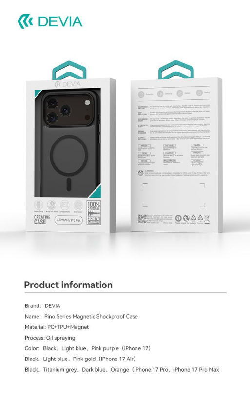 DEVIA CARCASA PINO MAGNETIC IPHONE 17 PRO MAX NEGRO