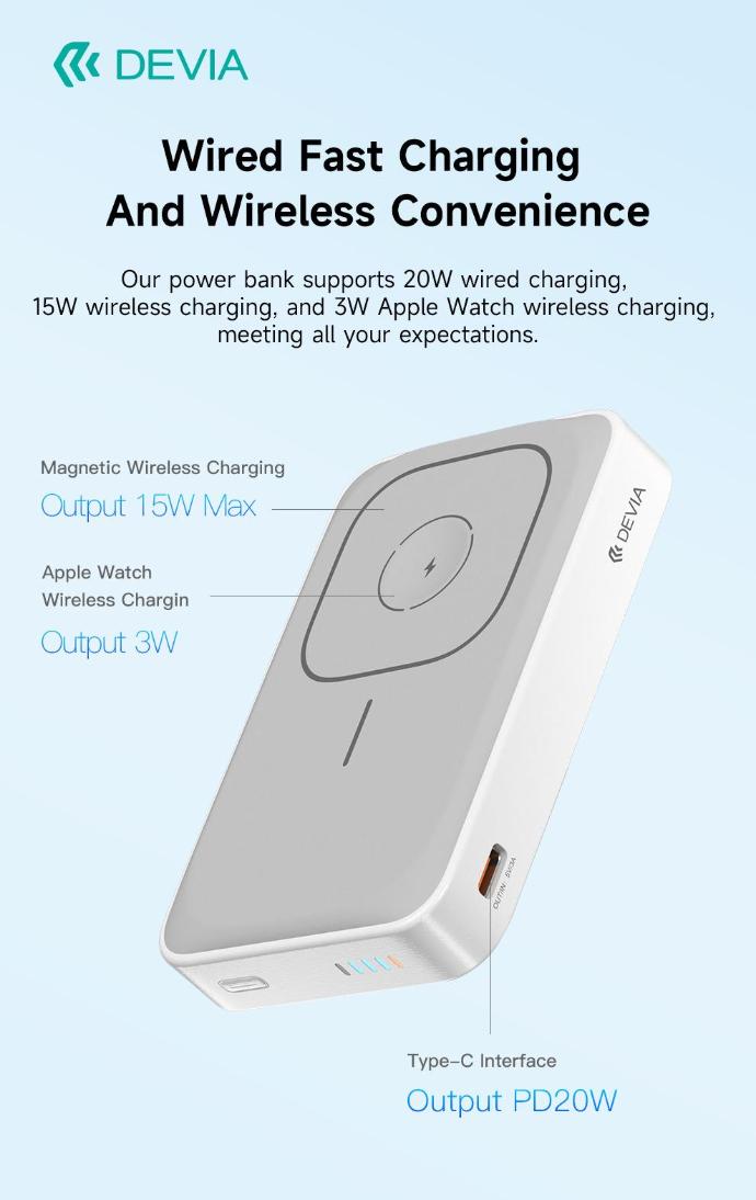 DEVIA BATERIA AUXILIAR MAGNETICA CON SOPORTE 3 EN 1 10000mAh BLANCO