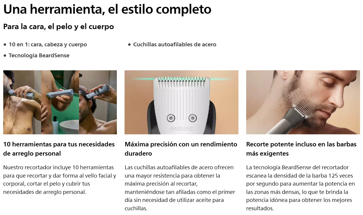 Versatilidad total 10 en 1: El Philips MG5921/15 es un cortapelos multifunción que integra 10 accesorios de alta precisión para barba, cabello, nariz y cuerpo. Permite personalizar tu estilo con total control, desde degradados hasta afeitados completos, gracias a sus 11 posiciones de corte entre 0,5 mm y 16 mm.