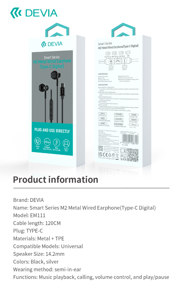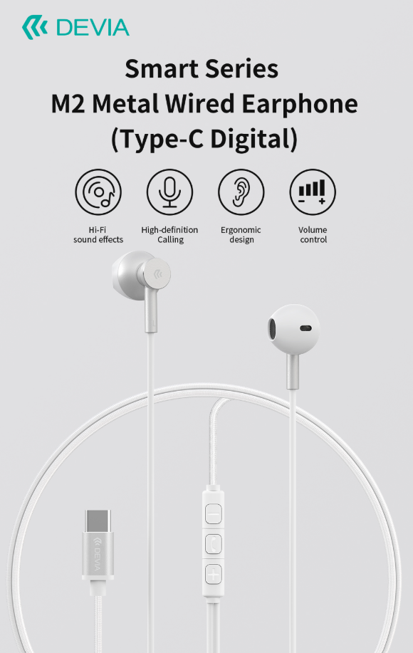 Diseñados especialmente para dispositivos sin conector de 3,5 mm, los Devia Smart M2 cuentan con conexión USB-C, ofreciendo compatibilidad y un sonido digital más estable y de mayor calidad ⚡.