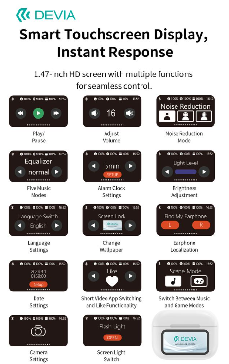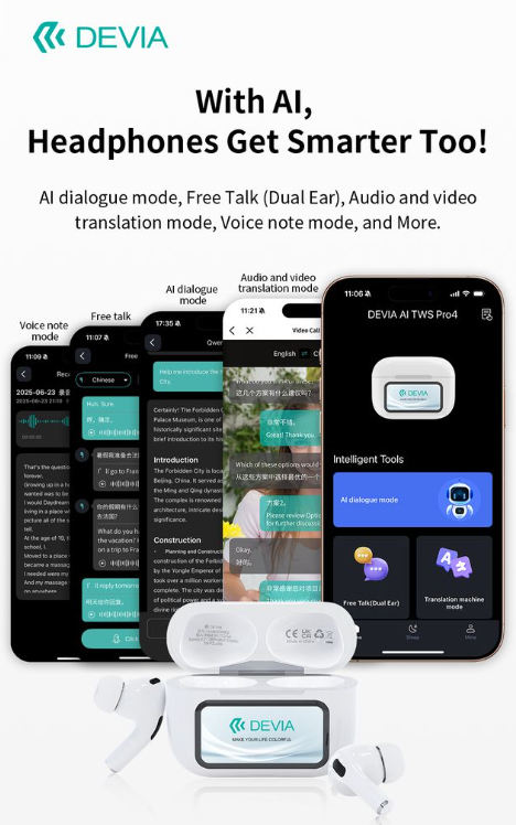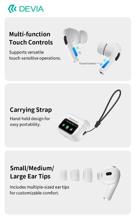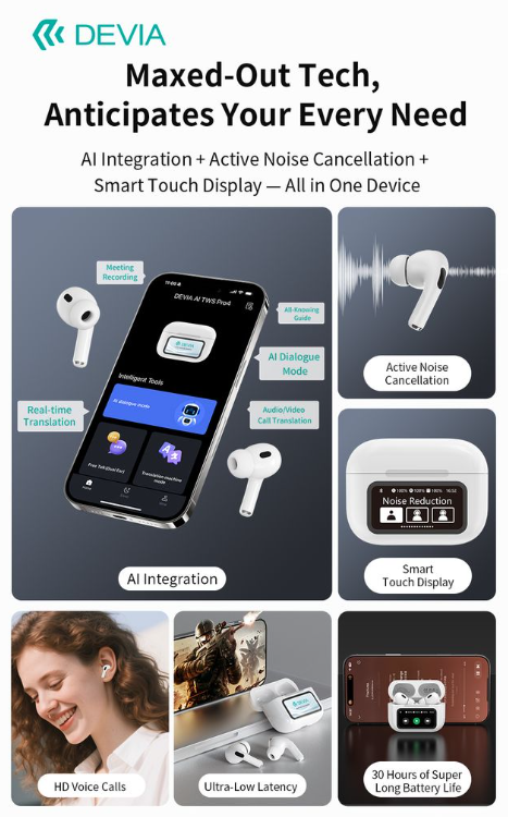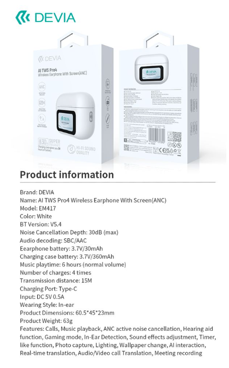 DEVIA AURICULAR BLUETOOTH TRADUCCION CON PANTALLA TWS ANC PRO4 BLANCO