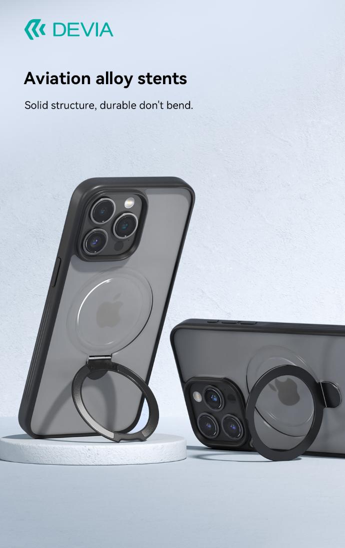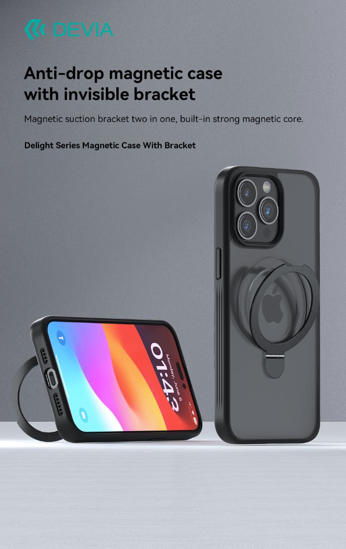 [Funda Magnética con Soporte Invisible]: Basado en un concepto de diseño compacto y práctico, combina una fuerte tecnología magnética con un soporte plegable. La compatibilidad con el iPhone permite conectar fácilmente todos los accesorios MagSafe. El soporte multifuncional en la parte posterior ayuda a liberar las manos.
