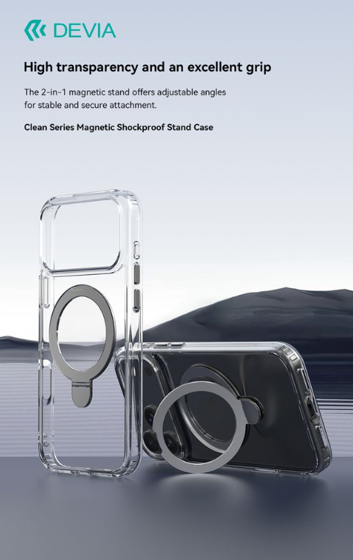📱 Funda Devia Clean Series Magnetic Shockproof Stand Case – Transparente, Resistente y Multifuncional