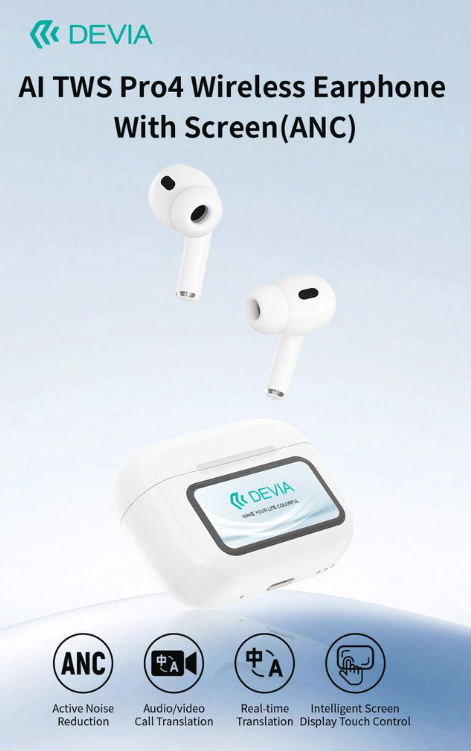 DEVIA AURICULAR BLUETOOTH TRADUCCION CON PANTALLA TWS ANC PRO4 BLANCO