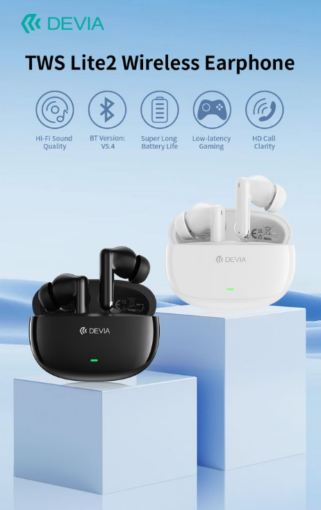 Disfruta de un sonido envolvente y una conectividad de última generación con los Devia TWS Lite2, diseñados para quienes buscan calidad, comodidad y rendimiento en un formato compacto y elegante.