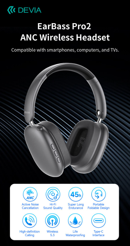 ¡Descubre la mejor experiencia de audio con los auriculares inalámbricos Devia EarBass Pro2! Con la tecnología de cancelación activa de ruido (ANC) para una claridad de sonido y una potente duración de la batería de hasta 45 horas de uso, disfruta de la música, las llamadas y los juegos sin limitaciones. Son ligeros y plegables para facilitar su transporte y cuentan con conectividad Bluetooth 5.3 para una conexión estable con un alcance de hasta 15 metros. Se cargan a través de un puerto USB C y se pueden utilizar con un cable AUX.