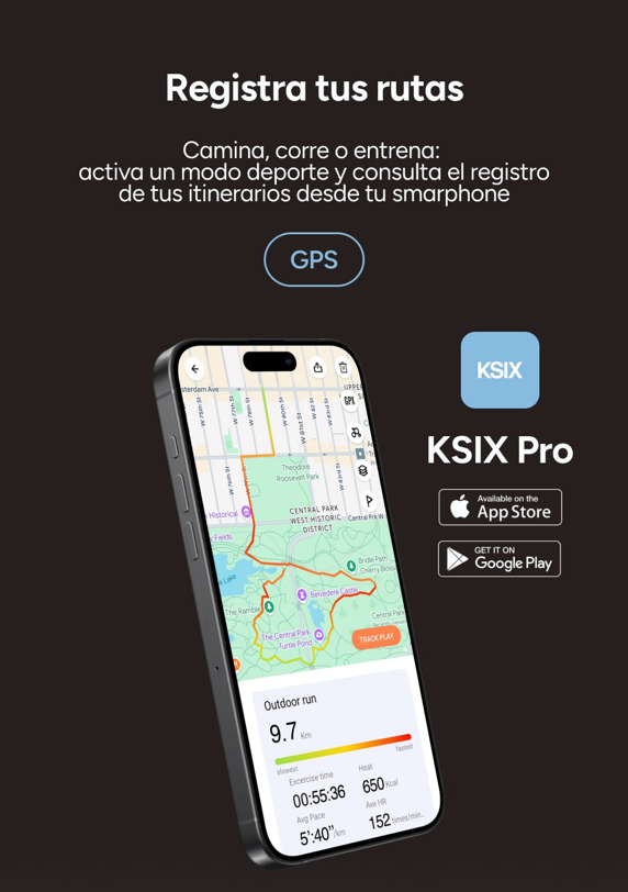 El KSIX Horizon está pensado para que te muevas más y te cuides mejor. Te ofrece funciones como la medición de frecuencia cardíaca, oxígeno en sangre, calidad del sueño o recuento de pasos, para que controles fácilmente tus constantes y actividad física. Además, te ofrece más de 150 modos deportivos, para que entrenes a tu ritmo, ya sea corriendo, haciendo yoga, nadando o practicando ciclismo, entre muchos otros. ¡Escoge tu aventura diaria!