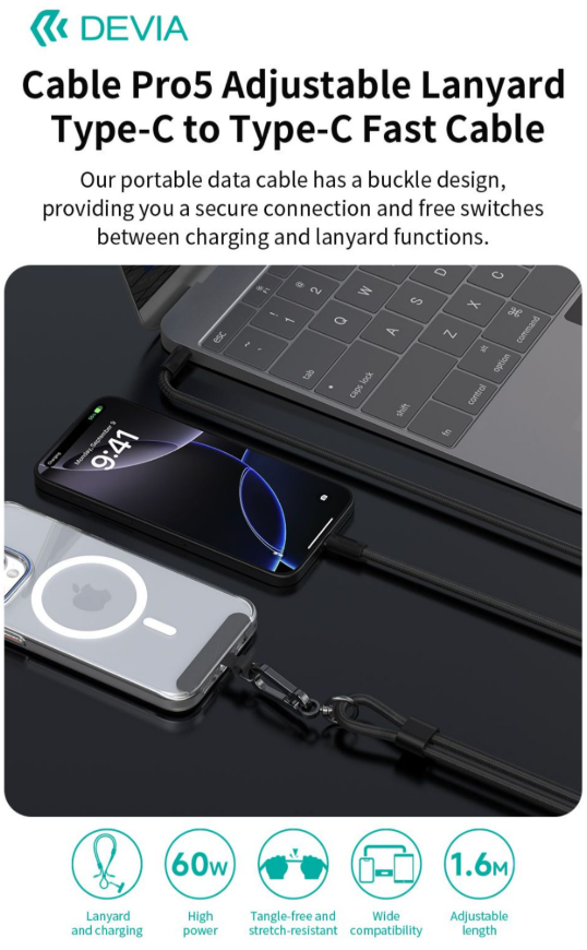 DEVIA COLGANTE/CABLE C-C 60W 1.6m NEGRO