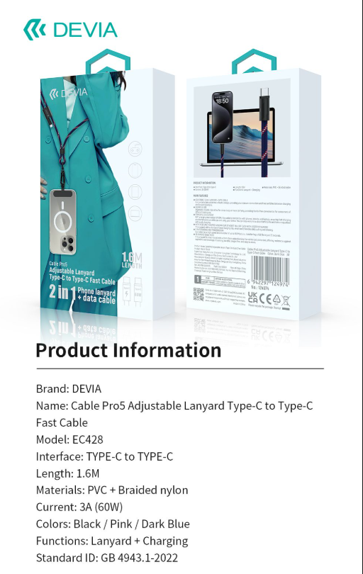 DEVIA COLGANTE/CABLE C-C 60W 1.6m ROSA