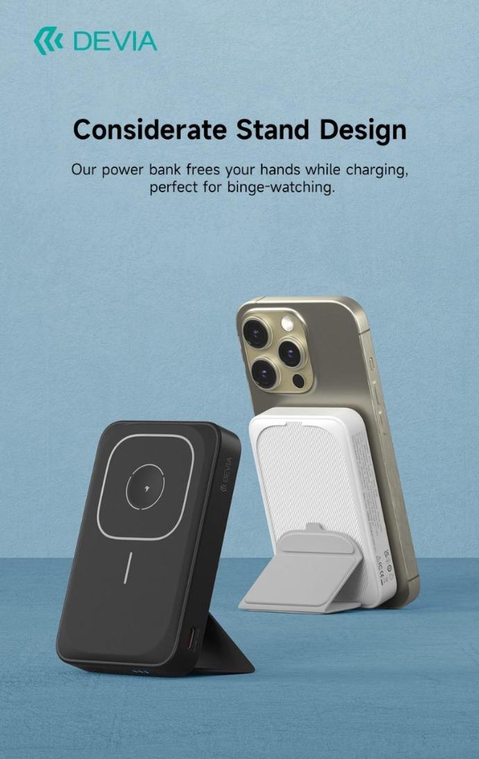 DEVIA BATERIA AUXILIAR MAGNETICA CON SOPORTE 3 EN 1 10000mAh BLANCO