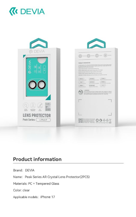 📸 Protector de Lentes Devia Peak Series AR Crystal – iPhone 17