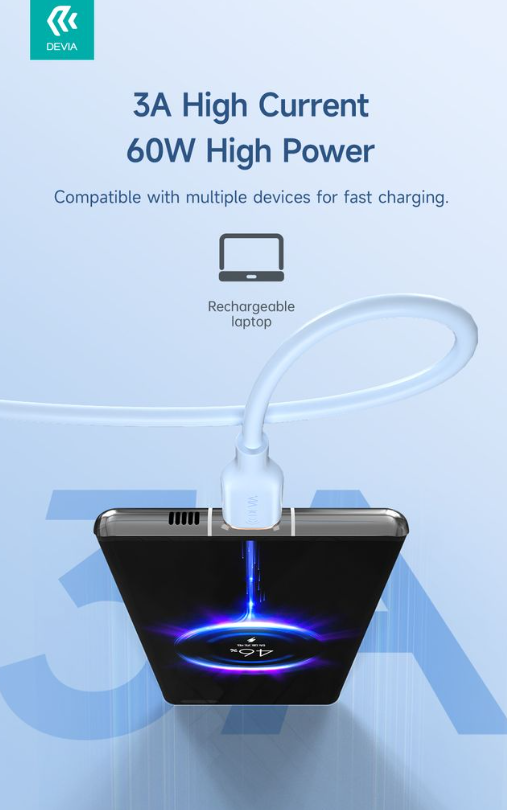 Carga rápida de 60W: Soporta una corriente de 3A, ideal para carga veloz de móviles, tablets y portátiles. ¡Energía completa en menos tiempo!