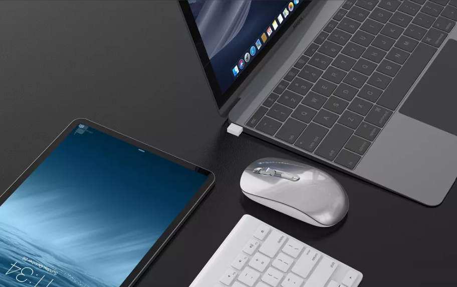 Presentamos el Devia Dual Mode Wireless Silent Mouse, un accesorio versátil que ofrece una compatibilidad perfecta con diversos dispositivos. Este ratón cuenta con dos modos con el adaptador USB/USB-C, lo que le permite conectarse a través del modo inalámbrico Bluetooth 5.1 o 2.4GHz.
