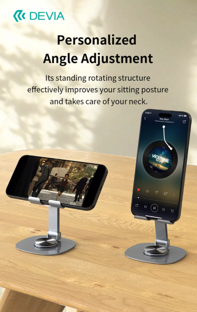 El soporte Devia es un práctico accesorio para diversas situaciones. Libera las manos de sostener el dispositivo, por lo que es ideal para ver videos, hacer videollamadas, leer o trabajar. Ya sea en casa, en la oficina, en un salón de clases o en una cafetería, este soporte ofrece comodidad y funcionalidad. Su diseño portátil y plegable hace que sea fácil de transportar y almacenar, asegurando que siempre tenga un soporte confiable para su dispositivo.
