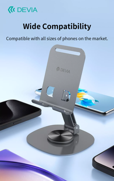 Presentamos el Devia 360 Degrees Desktop Smartphone Plegable Metal Stand en elegante negro. Este soporte versátil es compatible con teléfonos celulares que van desde 4,7 pulgadas de tamaño de pantalla. Ya sea que tenga un smartphone pequeño o uno más grande, este soporte proporciona una plataforma segura y estable para su dispositivo.