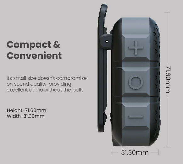 Más allá del tamaño, la verdadera portabilidad se mide en cómo puedes transportar tu dispositivo. La Pocket S viene equipada con un práctico clip magnético que permite engancharlo en cualquier prenda o accesorio, desde una camiseta hasta el manillar de tu bicicleta. Esta funcionalidad manos libres lo convierte en una opción perfecta para quienes están siempre en movimiento. No importa a dónde vayas, tu música irá contigo sin tener que cargar la bocina en la mano o en una bolsa.