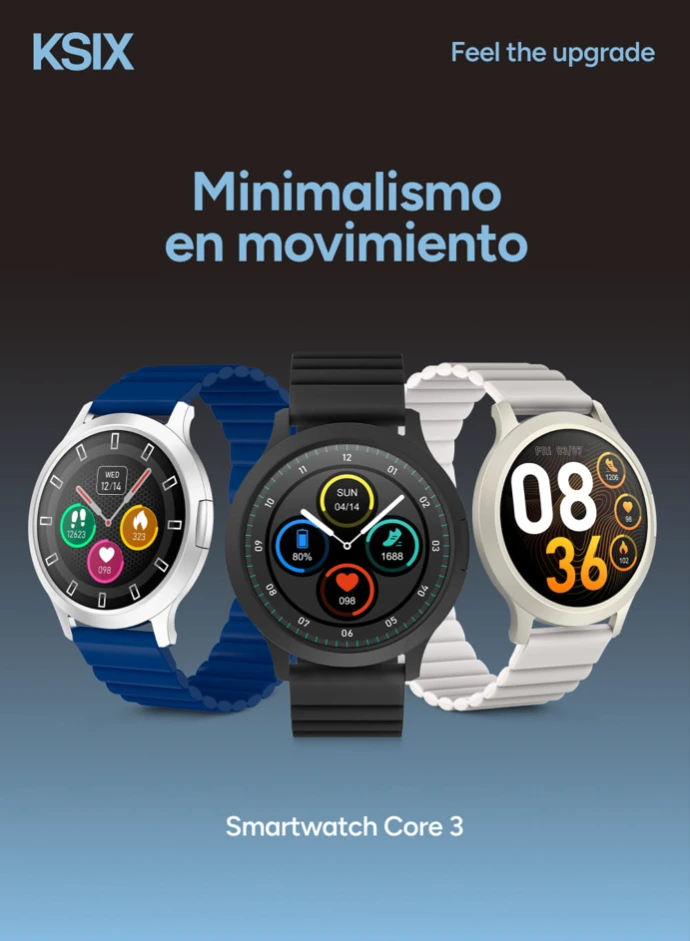 Core 3 apuesta por un perfil ultra fino que se adapta a la muñeca desde el primer momento. Es ligero, cómodo y pensado para llevarlo durante horas sin que moleste. La caja de aleación de zinc aporta una sensación sólida sin perder ligereza, mientras que la integración del bisel con la pantalla crea una silueta continua y elegante. El botón lateral es discreto y práctico, y la correa magnética de silicona permite ajustarlo en segundos, acompañándote del trabajo al ocio sin que tengas que pensar en él.