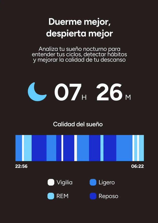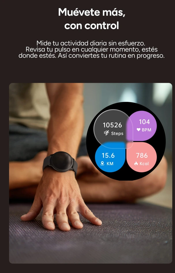 Incorpora funciones de seguimiento de actividad y monitorización de salud para acompañarte en tu día a día. Incluye múltiples modos deportivos que se adaptan a distintas rutinas y estilos de entrenamiento. Toda la información se muestra de forma clara y sencilla, haciendo que controlar tus progresos resulte natural y cómodo.