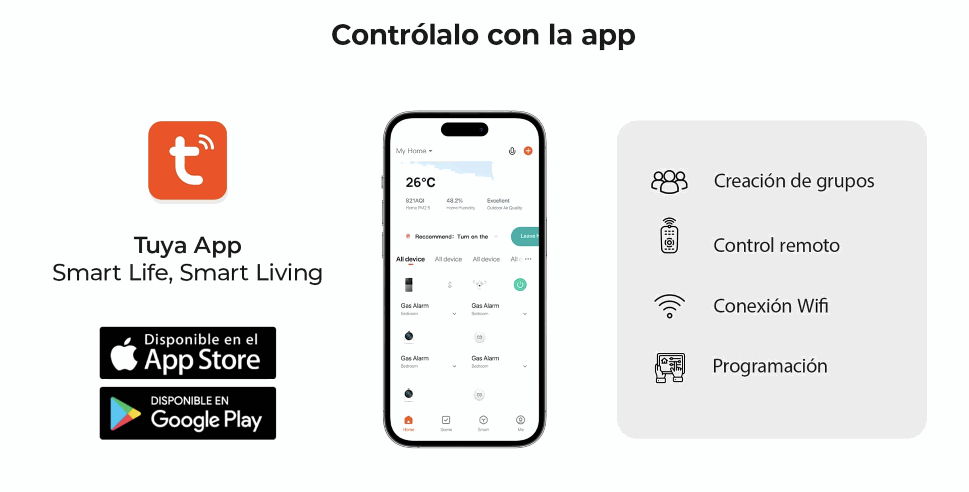La configuración es fácil y rápida: para empezar se debe descargar la app gratuita Smart Life o Tuya Smart.