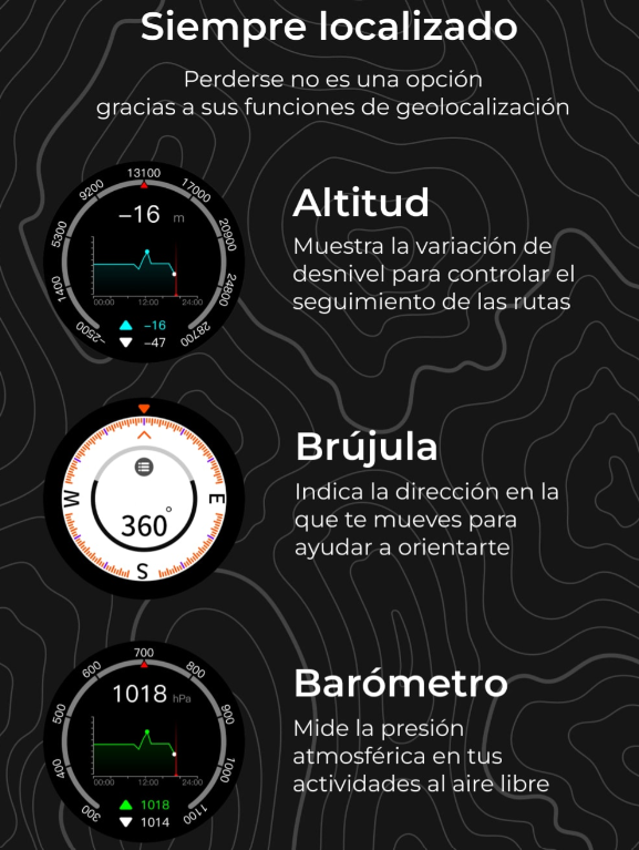 Gracias a su GPS integrado, el KSIX Explorer es capaz de guiarte y guardar registros de tus rutas por la naturaleza en la app. Si te encanta el senderismo y los deportes de montaña, el Explorer te acompañará donde tus aventuras te lleven.