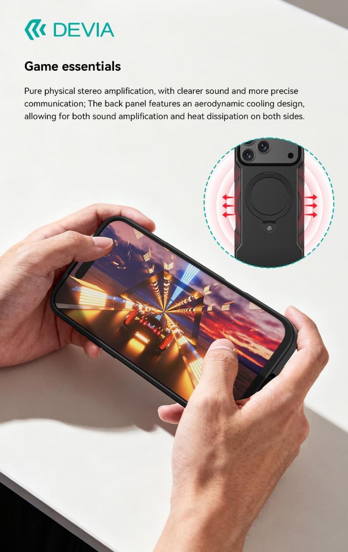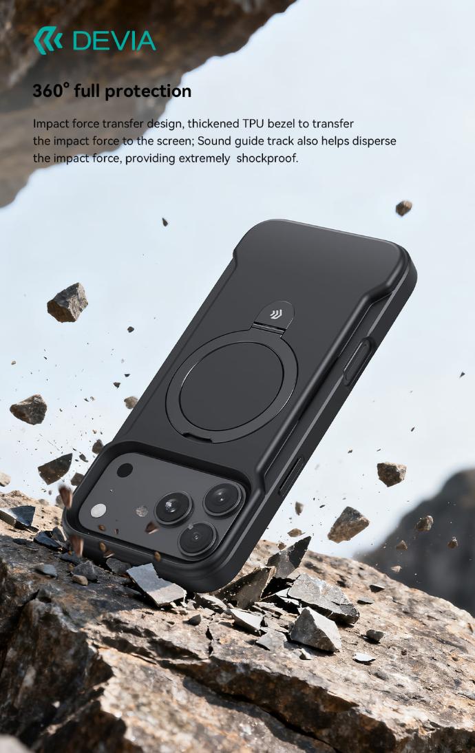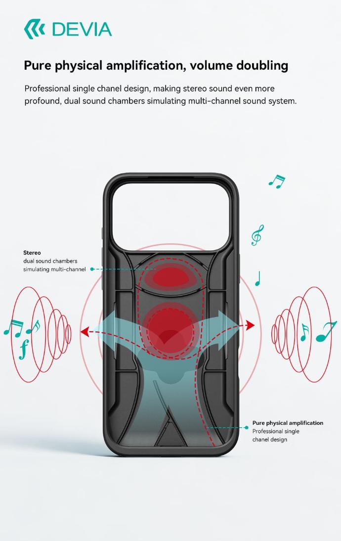 DEVIA CARCASA MAGNETIC SOUNDBOOST SOPORTE IPHONE 17 PRO MAX NEGRO