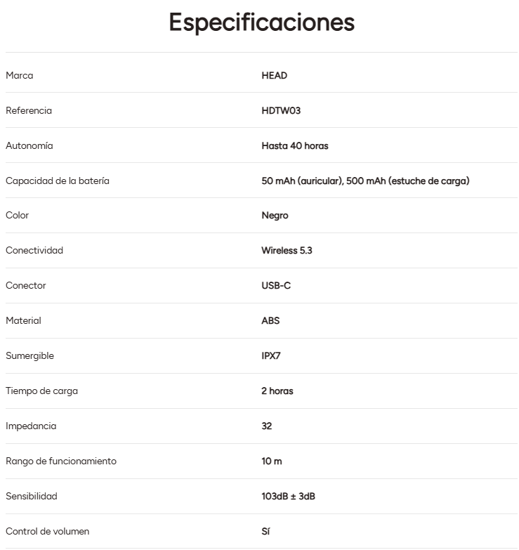 Los HEAD Flex Hooks son los auriculares inalámbricos que todo deportista necesita. Tienen un diseño de gancho que aporta una sujeción cómoda para disfrutar de tu música favorita o gestionar llamadas durante tus entrenos con total libertad. Estos auriculares inalámbricos tienen hasta 40 horas de autonomía gracias a su estuche de carga. Además, cuentan con un grado de protección IPX7, que ofrece resistencia al agua y el sudor. Si eres de los que puede escuchar varias listas de reproducción durante el entreno o un podcast en el descanso, estos auriculares te interesan.
