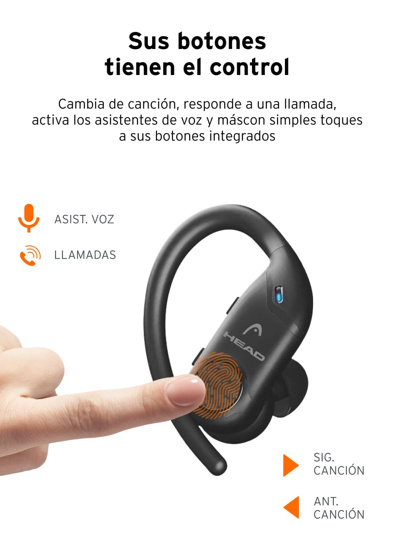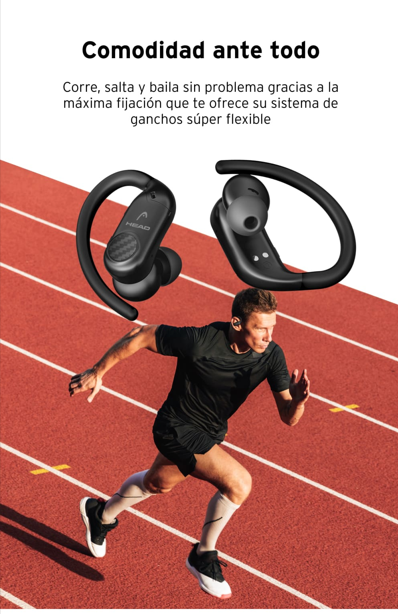 Los HEAD Flex Hooks están diseñados con un gancho flexible que se ajusta a la perfección al contorno de la oreja, lo que lo hace ideal para atletas de todos los niveles o personas activas que necesitas unos auriculares inalámbricos que no se muevan de su sitio.