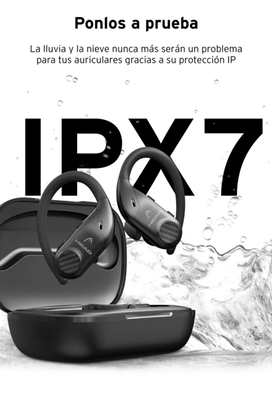 ¿Has salido a entrenar y se ha puesto a llover? No pasa nada, los HEAD Flex Hooks cuentan con protección IPX7 contra el agua y el sudor por lo que el mal tiempo jamás volverá a ser un problema.