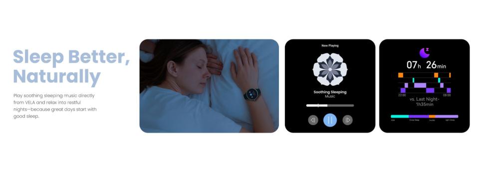 • 🎶 Música para dormir – Función integrada con sonidos relajantes para ayudarte a conciliar el sueño y mejorar tu descanso.